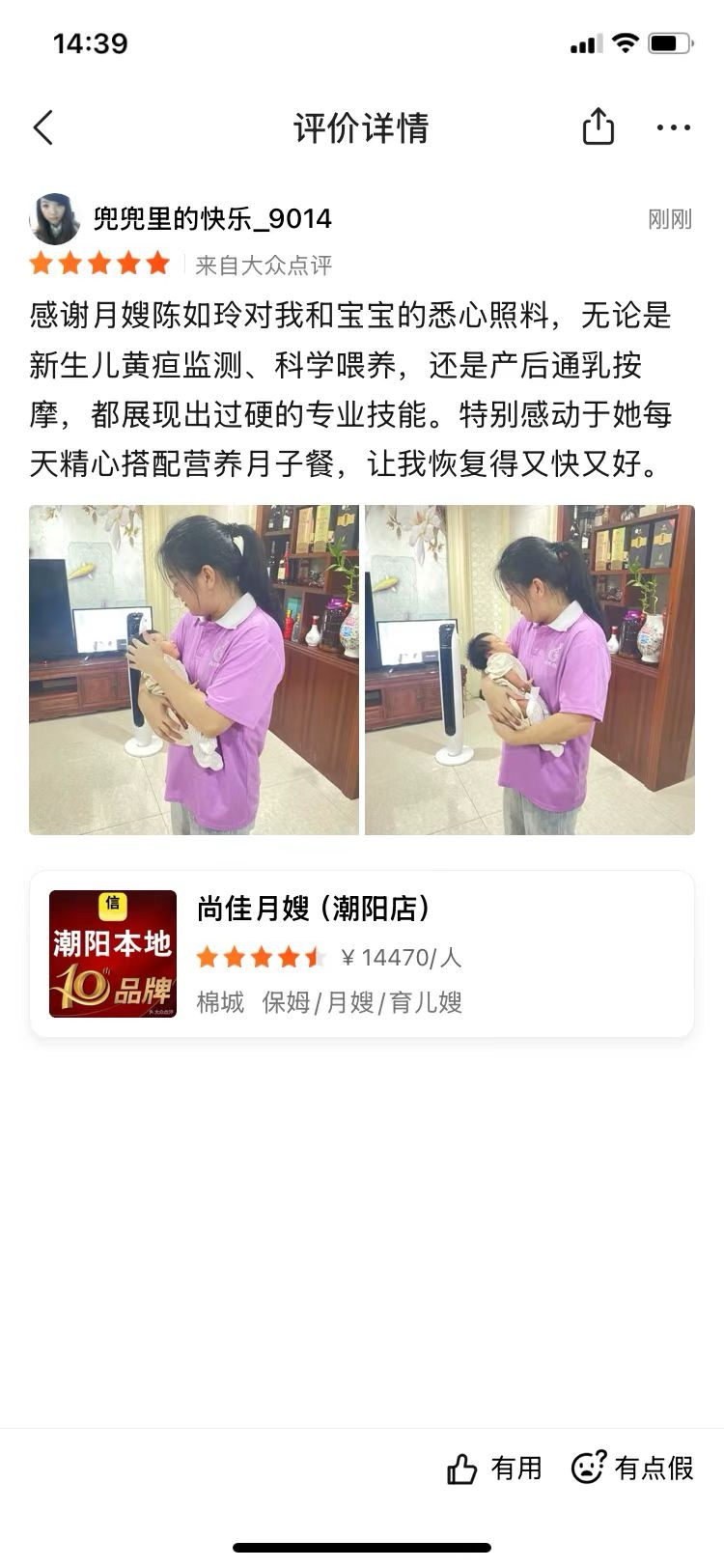陳如玲來(lái)自汕頭潮南,是地道的潮汕人,因喜歡寶寶加入母嬰護理行業(yè),擅長(cháng)給產(chǎn)婦擦身,按摩,對于寶寶的護理,如玲姐能夠細致的觀(guān)察寶寶的黃疸,紅屁屁等。有多年的醫院護理經(jīng)驗,是您月子期的不二選擇。